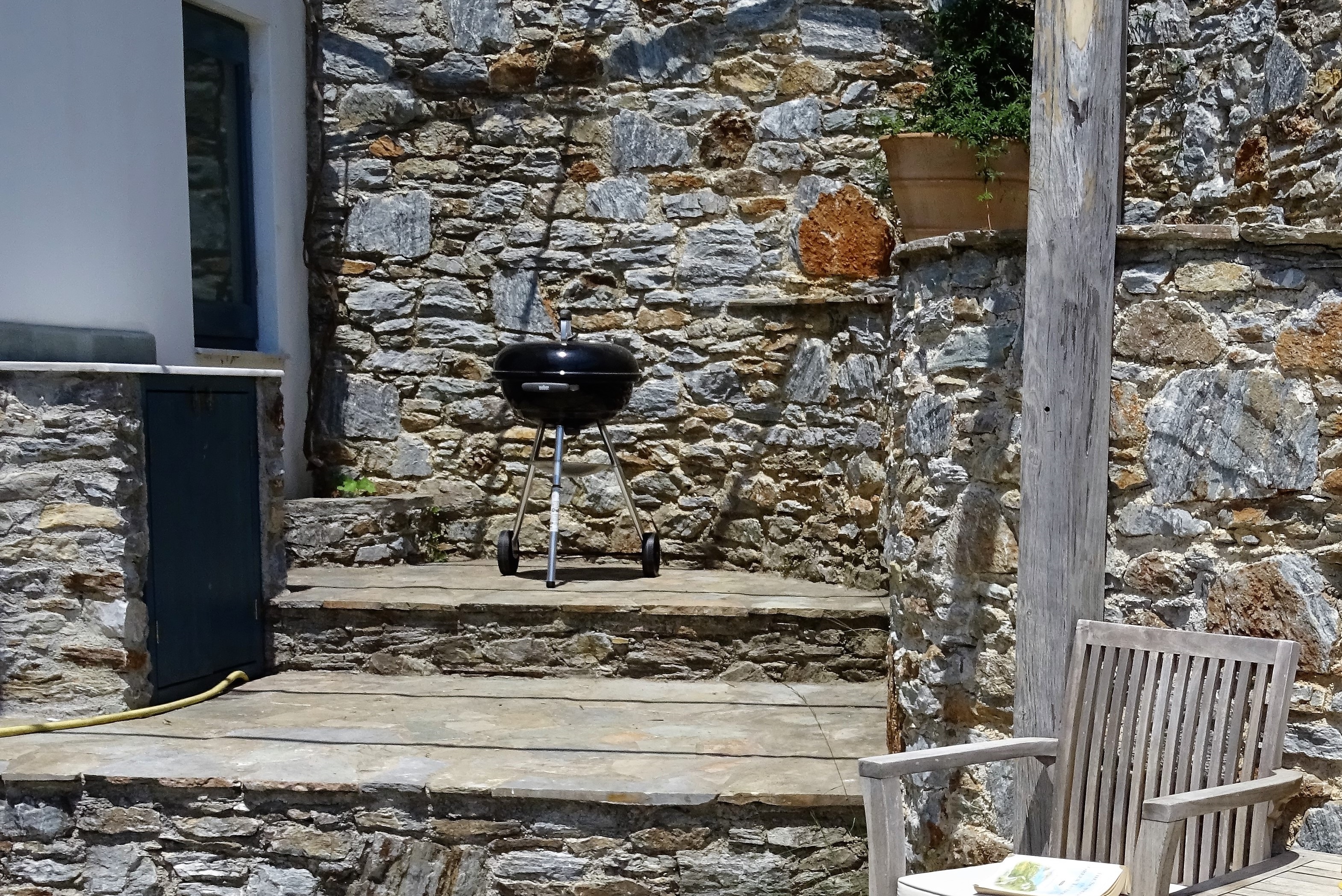 Ysyhia [Ησυχíα: pronounced Ee-see-hee-ya] is the Greek word for tranquility. The cottage is far enough from civilisation to be astonishingly quiet and restful yet close enough to be convenient for shops, beaches and eating out. And of course the view across the sea towards the mountains of Evvia is stunning, with no light pollution, the night sky is bursting with stars. No other buildings can be seen from the cottage and none overlook it. Our house is up the hill from the cottage on the same 1½ acre plot. Each house has its own private access and a fence separates our smallholding from the cottage and its garden. A grove of olive and almond trees provide each house with total privacy from one another but we are on hand should you want help or advice. This is truly a place to unwind, relax and imagine that you are alone in the world. But, when you want to venture out to shops, beaches or tavernas, all can be found within a 3km radius.