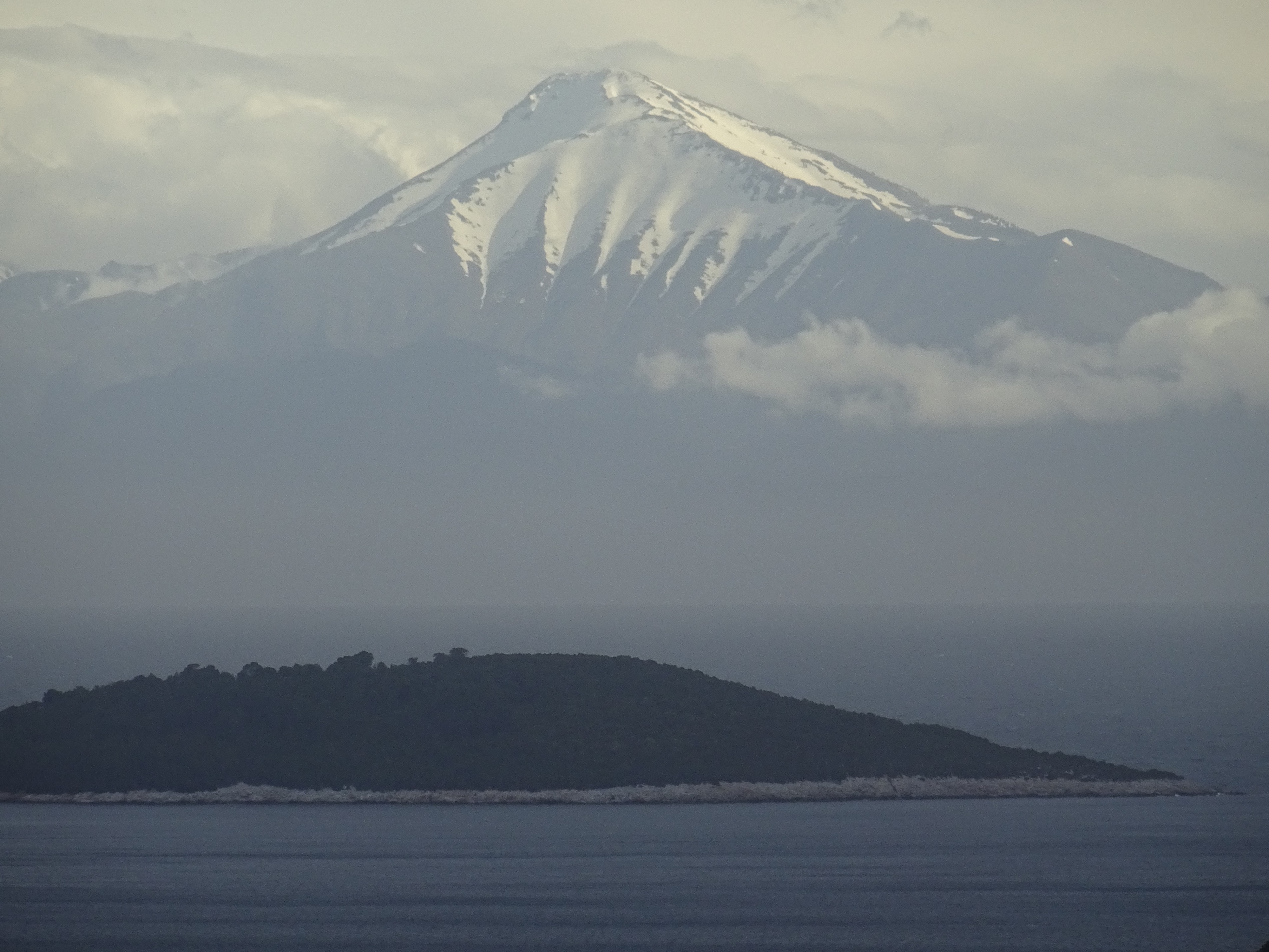 March 2017 - Mount Dirfi on the island of Evvia looming majestically over Trachili on Skopelos Island. It is possible to see across astonishing distances during winter months when there is less haze above the sea.