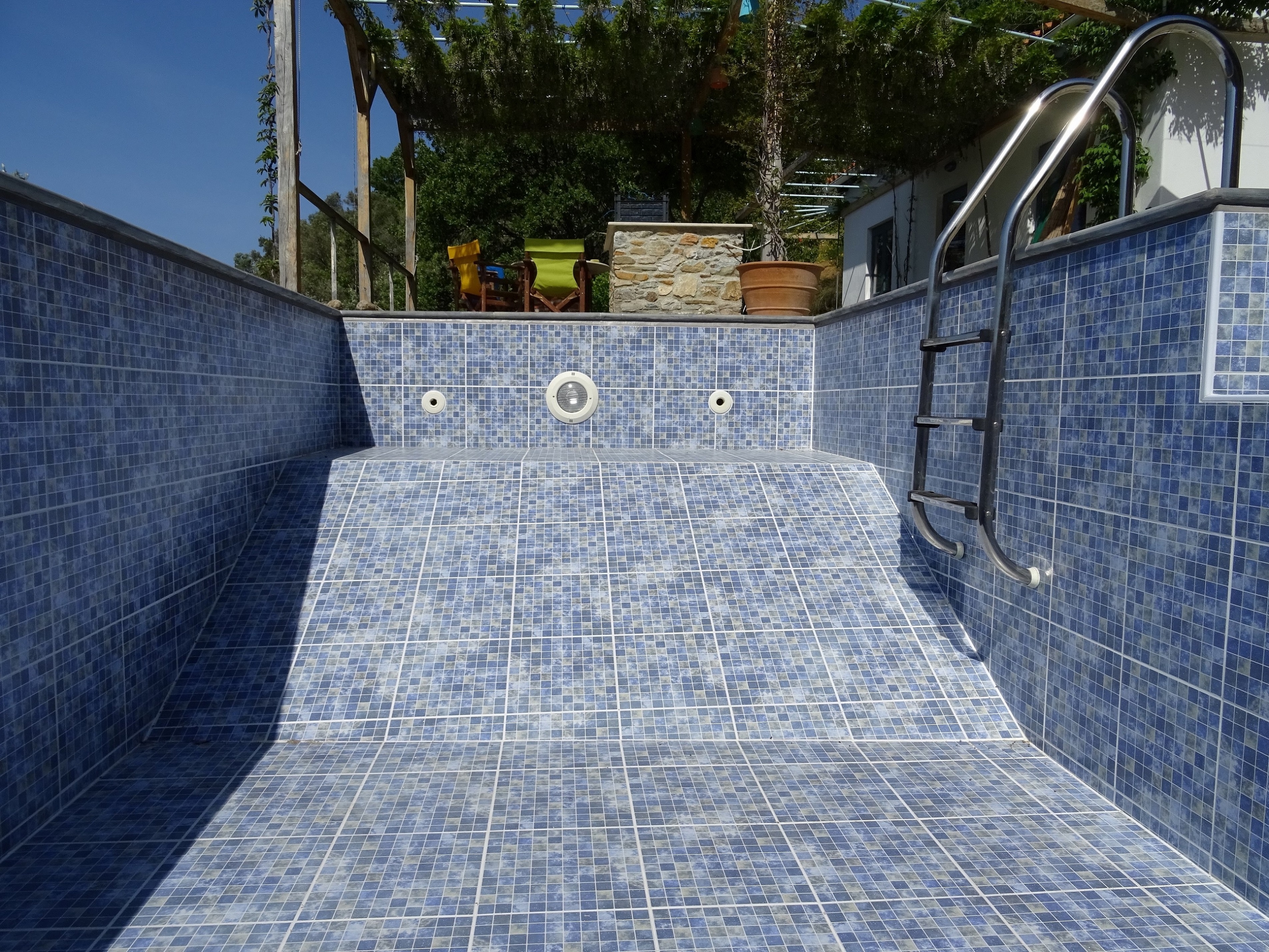 April 2017 - The month was dominated by re-styling and re-tiling the pool. The deep end is shallower making it easier to see the view from inside the pool. The ledge is shallower too, so now you can sit in the pool sipping a drink while enjoying the view.
