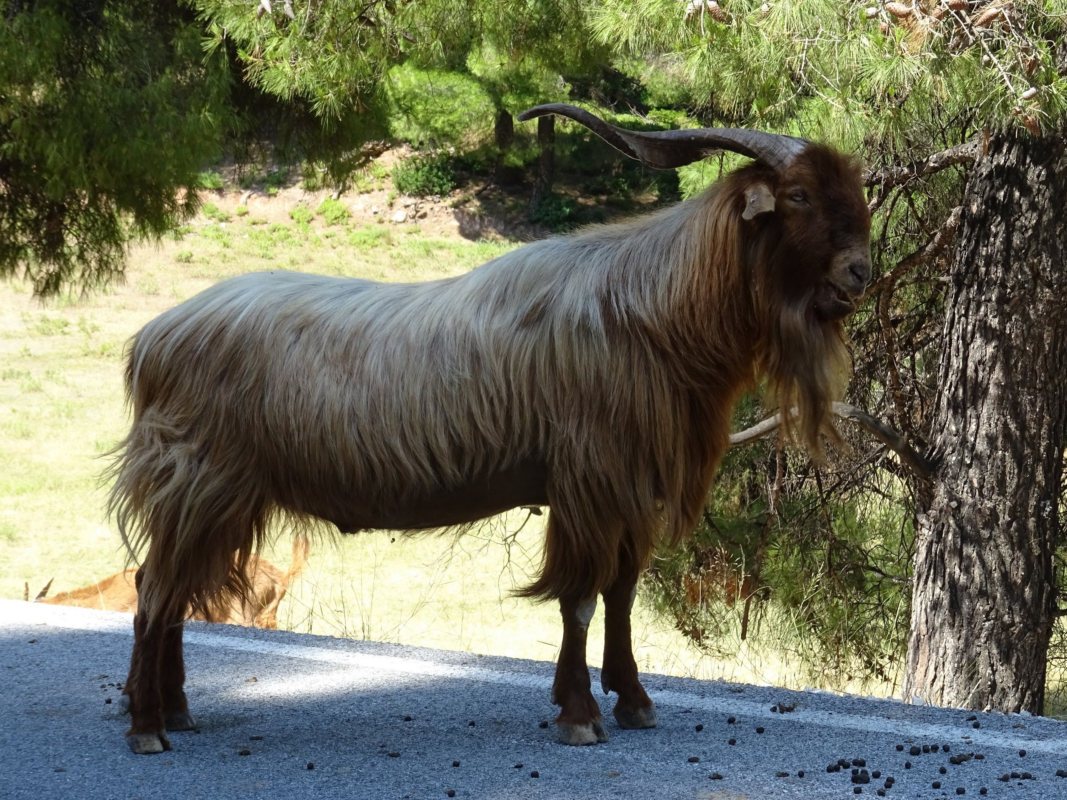 July 2017 - Crossing the island through the forest over the mountain road which runs between Neo Klima/Elios and Skopelos Town we met this handsome beast on the road just by the goat station there.