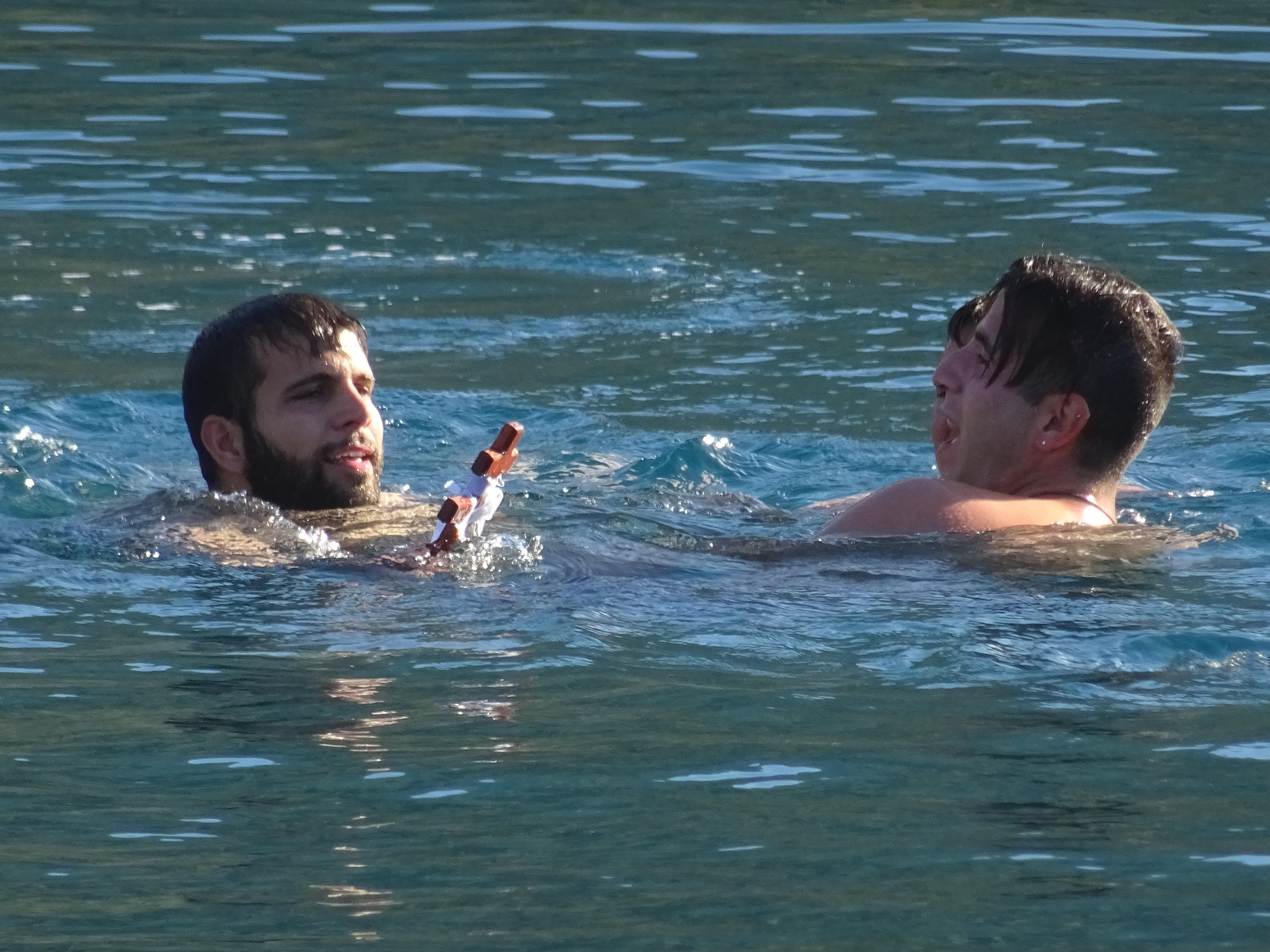 Jan 2018 - Epiphany is celebrated every year with a church service followed by this spectacle; the priest takes a small boat out into the harbour and throws a cross into the sea. Young men dive into the sea to retrieve the cross, watched by young women.