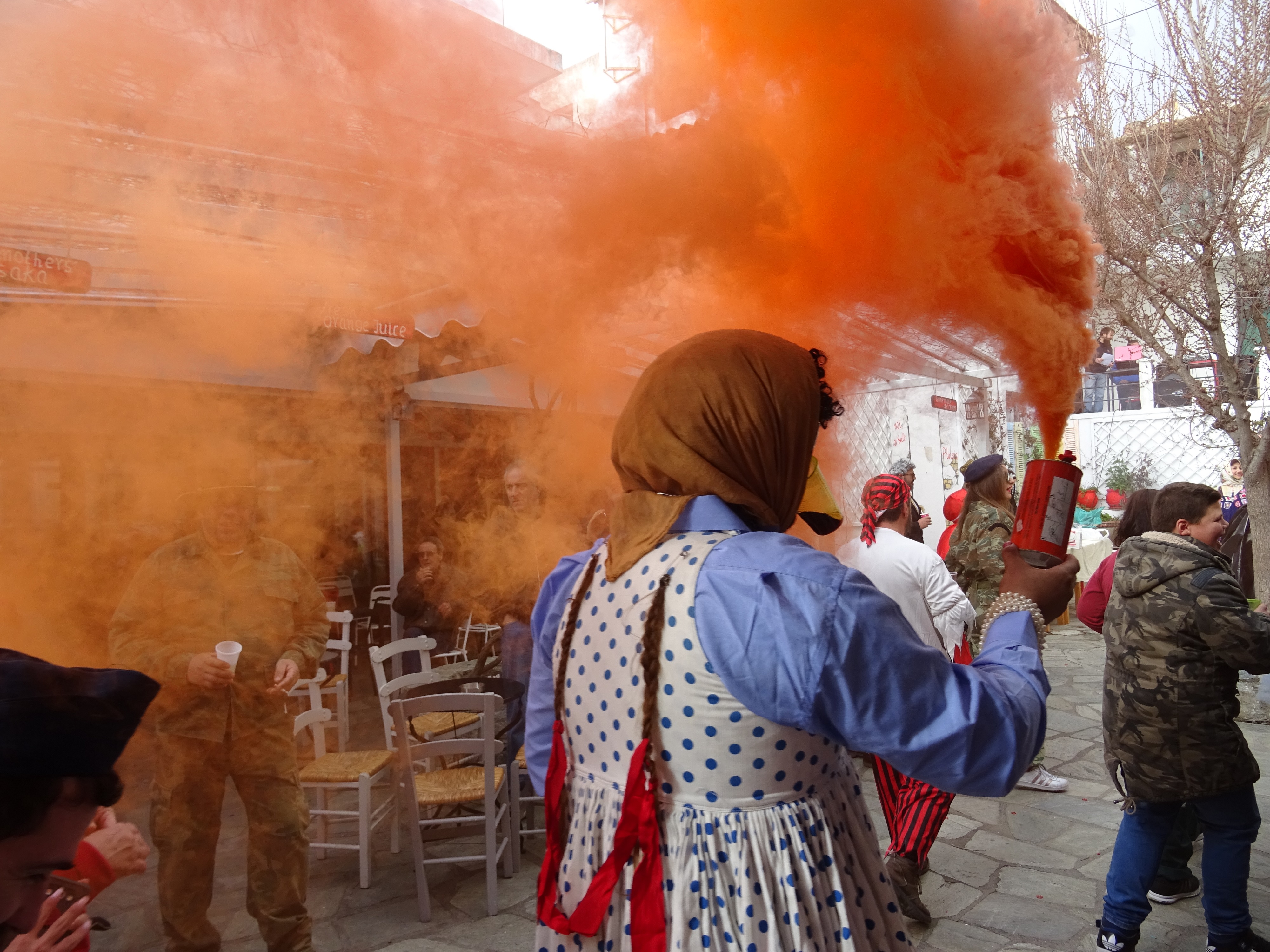 Feb 2018 - Carnival in Glossa is a raucous affair; plenty of fancy dress, a decorated fishing boat carried up to Central Square, orange smoke distress flares, air horns, firecrackers, souvlakis, wine and of course traditional dancing.